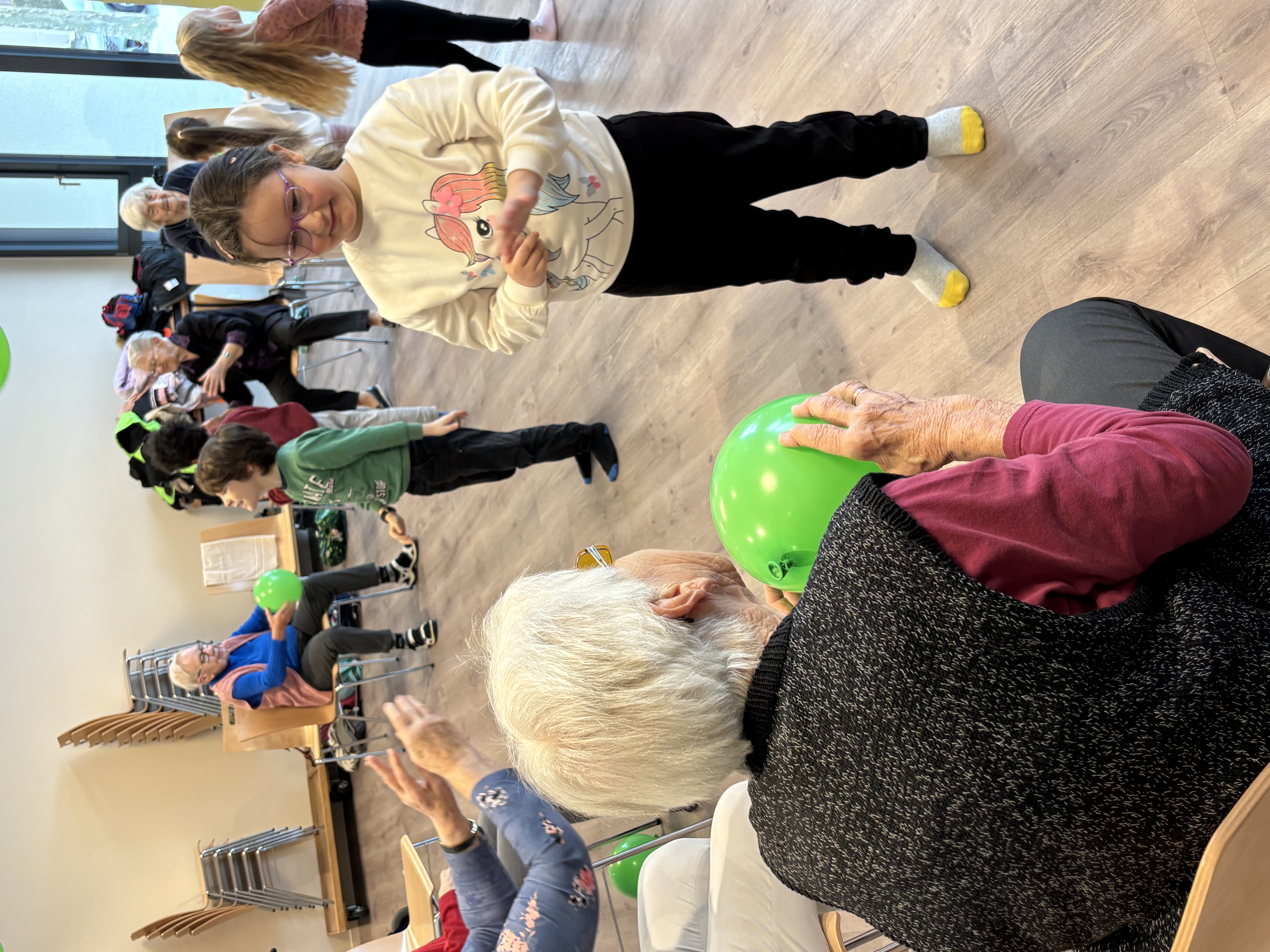 Gestern ging es beim Seniorenturnen laut und fröhlich zu und her. Gemeinsam mit den Kindergartenkindern der Gemeinde Oberkulm verbrachten unsere Bewohnenden einen aktiven Morgen. Es wurde geturnt, gesungen und viel gelacht.